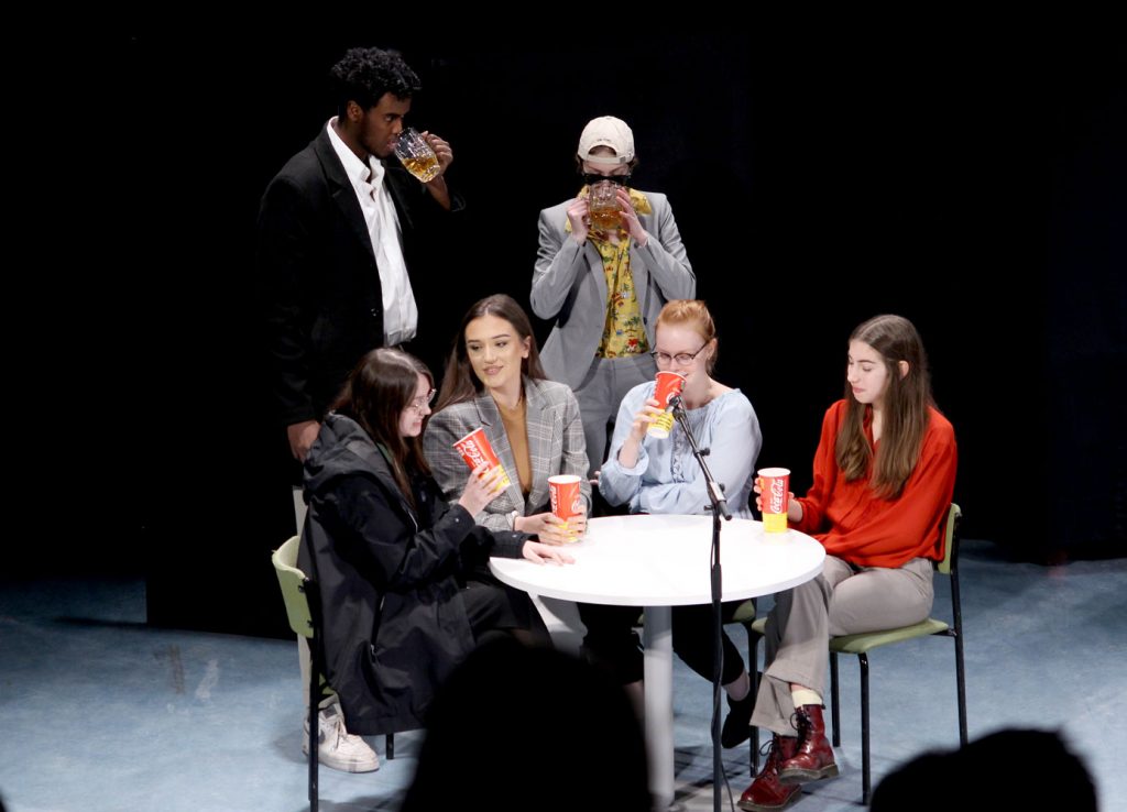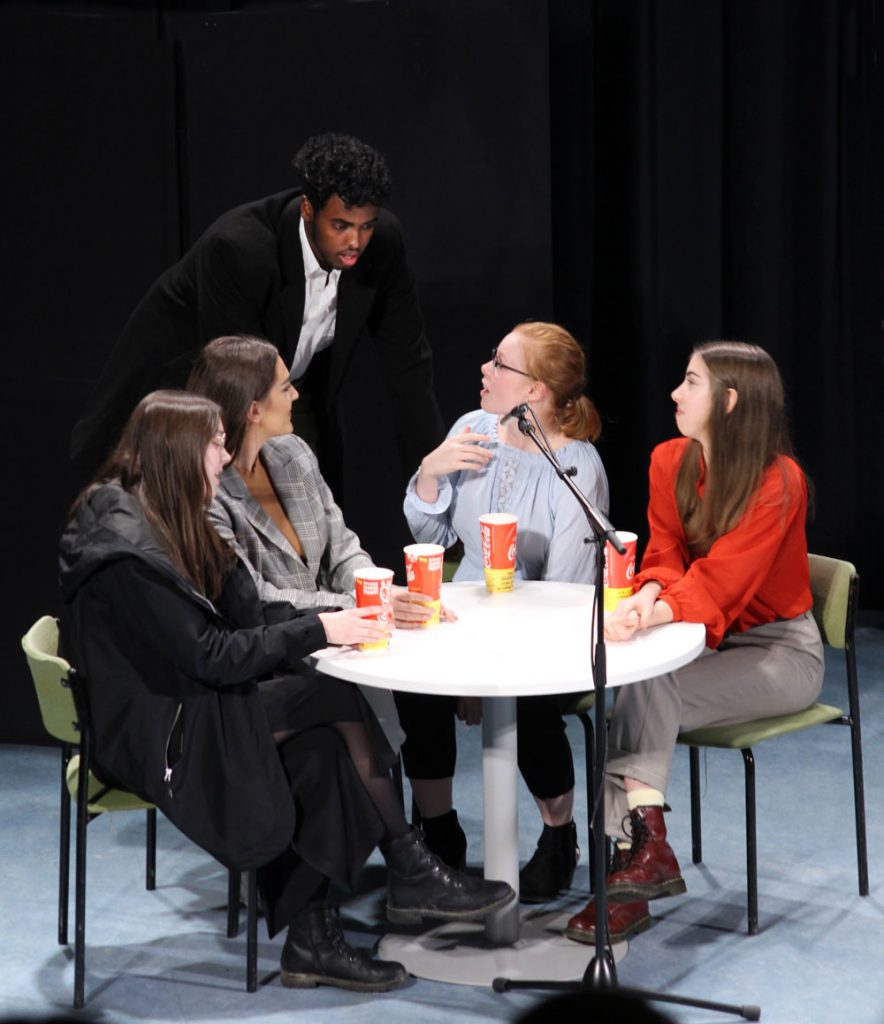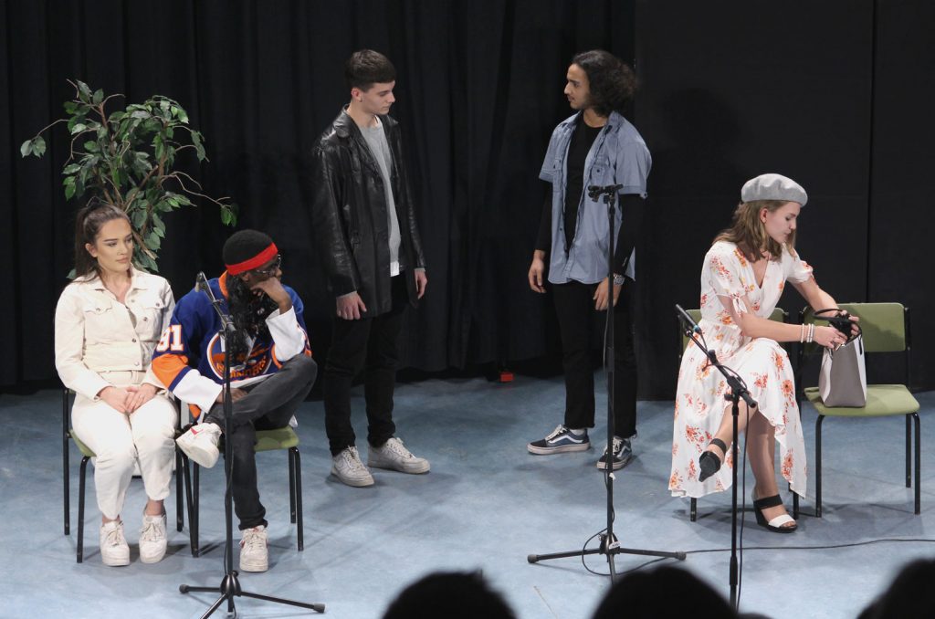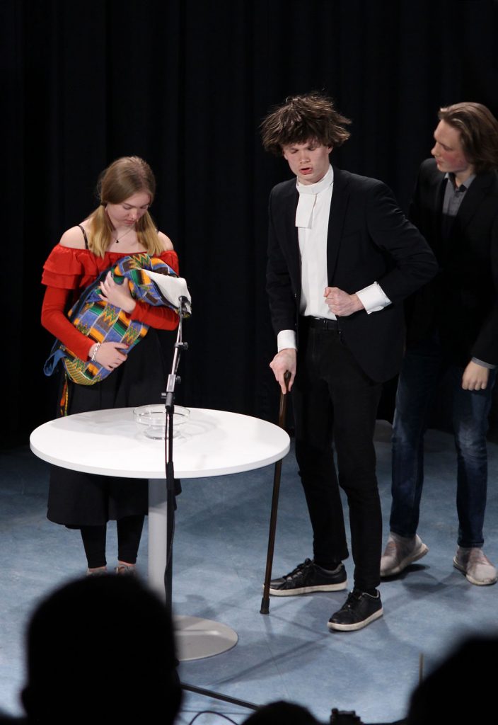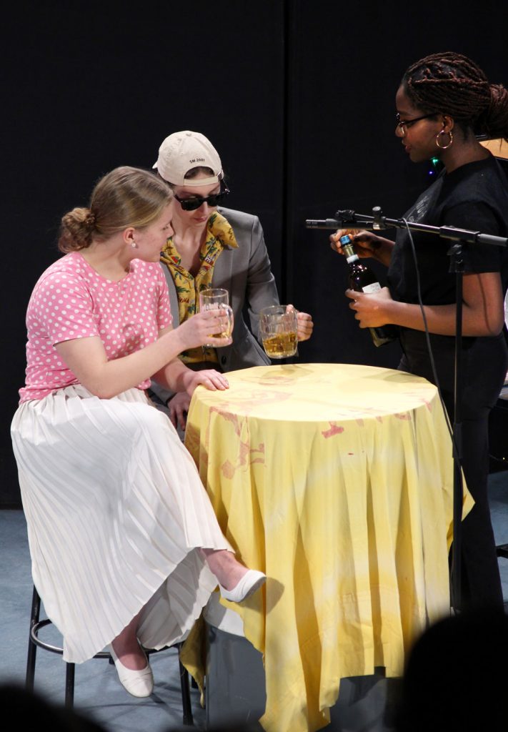 Näyttämön takana kiire vain lisääntyy ja lisääntyy kun vanhat lavasteet pitää korvata uusilla. Pöytiä, tuoleja ja sermejä siirretään hiljaa mutta nopeasti ennen seuraavaa kohtausta. Yleisön puolella ratkeaa nauru kun näyttelijä juoksee lavan poikki. Vuoden 2019 Musiikkiprojektin viimeisen näytöksen alkaessa näyttelijät kertaavat mielessään vuorosanojaan vielä viimeisen kerran ennen lavalle astumista. Ensin näytös esitettiin vanhemmille ja ystäville, sen jälkeen kaksi kertaa lukiolle.
