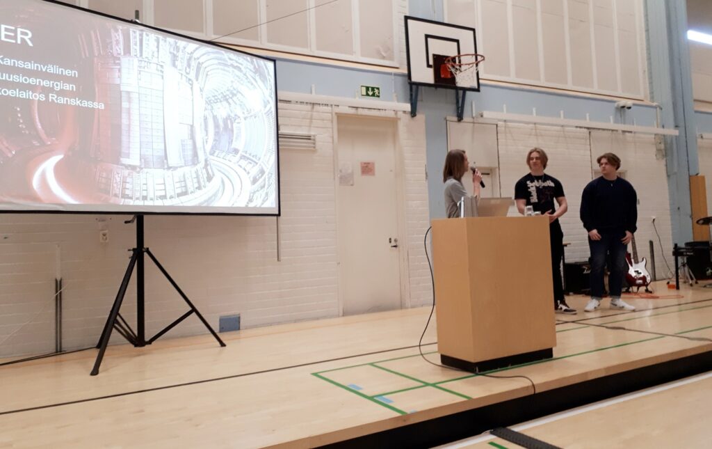 Tilaisuuden päätti tulevaisuuslinjalaisten Sulo Kaarteen, Miklas Musikan ja Ilmo Virolaisen projektityön esittely. Työssään opiskelijat olivat tutkineet eri energiantuotantomuotoja uusiutuvista energianlähteistä perinteisiin tuotantomuotoihin.