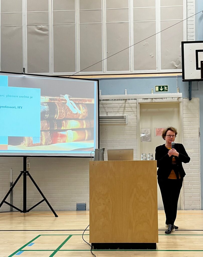 Historian professori Laura Kolbe kertoi historian tutkijan näkökulmasta Euroopan tarinaa.