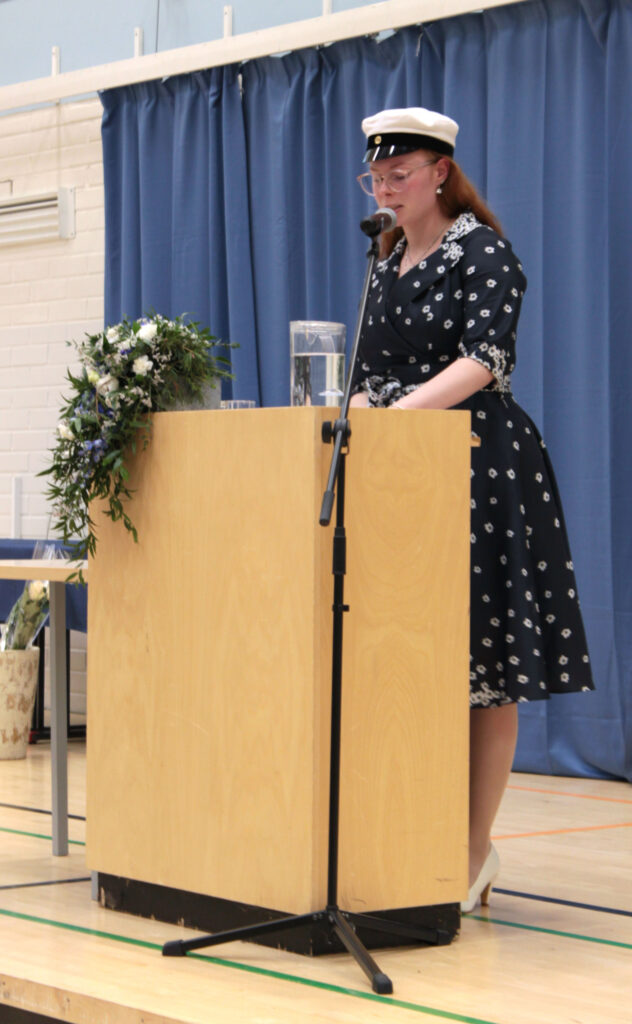Minulle suuri itsenäisyyden muutos tapahtui vaihto-oppilas vuotenani Italiassa. Kun lähdin vaihtoon, muutin kauas perheestäni, ja astuin toiseen perheeseen, jossa asiat olivat erilaisia omaan perheeseeni verrattuna. Olen perheessäni nuorin lapsi, ja yhtäkkiä olinkin vanhin lapsi, jolle muut sisaret uskoutuivat ongelmistaan. Vaihto-oppilas vuosi on ainutlaatuinen mahdollisuus, ja vaikka oma vaihto-oppilas vuoteni tapahtui koronan aikaan, olen kiitollinen siitä mahdollisuudesta, jonka koulumme minulle loi sinne lähtemiseksi. Kehotankin nyt teitä vielä lukiossa olevia lähtemään vaihto-oppilaaksi, jos se vain suinkin on mahdollista. Ja kehotan teitä, uudet ylioppilaat, lähtemään jatko-opinnoissanne vaihtoon tai vaikka välivuotenne aikana töihin tai pidemmälle matkalle ulkomaille. Vaihto-oppilas vuosi on matka, joka avaa silmämme uusille oppimisen mahdollisuuksille ja haastaa meidät astumaan ulos mukavuusalueeltamme. Itse olen aika ujo ja sisäänpäin suuntautunut henkilö, mutta Italiassa opin olemaan hieman avoimempi. Toki sitä sattuu, kun on ekstroverttien ja poskisuudelmien ympäröimänä. Vaihto-oppilas vuosi luo itsenäisyyttä ja rohkeutta. Tämä päivä on kuitenkin todiste siitä rohkeudesta ja sitoutumisesta, jota me kaikki olemme lukio uramme aikana osoittaneet.