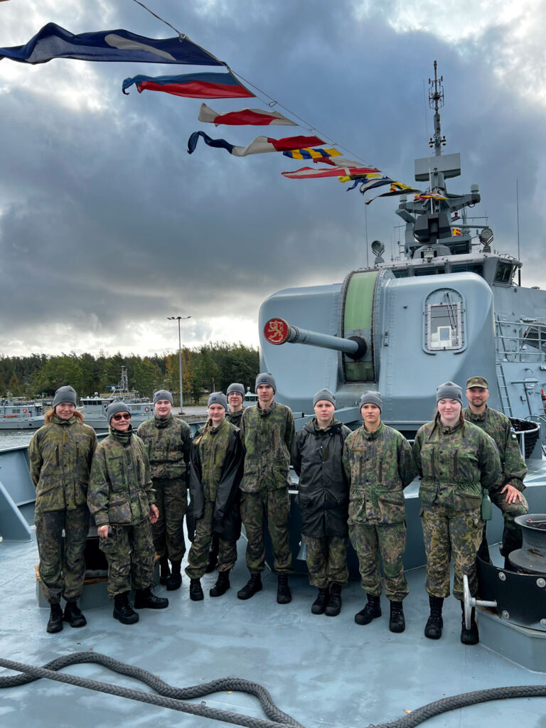 Rannikkoprikaatin edustajan alkuluento käsitteli turvallisuuspolitiikan perusteita ja merenkulun turvaamisen merkitystä Suomelle. Lisäksi saimme tietoa Puolustusvoimista, Merivoimista, MPK:sta [maanpuolustuskoulutuksesta] ja Upinniemen varuskunnan tarjoamista mahdollisuuksista, kuten rannikkolaivastosta ja sotilaspoliiseista (spolle). Luennolla meille kerrottiin myös ensiavusta ja toiminnasta onnettomuustilanteessa.
