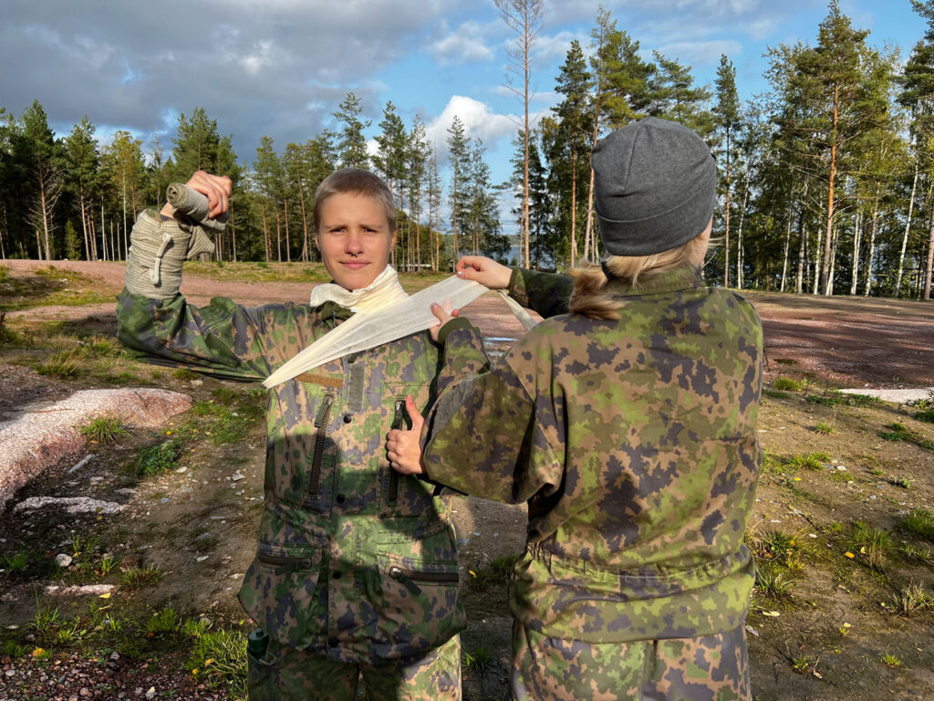 Menen lukion jälkeen armeijaan, joten Porkkalan lukion Instagramissa näkemäni kuvat turvallisuuskurssista herättivät kiinnostukseni samoin tein. Yritin saada kavereitani suostuteltua mukaan, mutta jokainen heistä kieltäytyi, sillä heitä ei kiinnostanut “rämpiä pusikossa”. En silti jättänyt turvallisuuskurssia pois, vaikka jännitin, tulenko saamaan kavereita sieltä. Näin jälkikäteen katsottuna pelko oli turha ja kurssin myötä myös varusmiespalvelukseen lähtemisen suunnitelmani vahvistuivat.