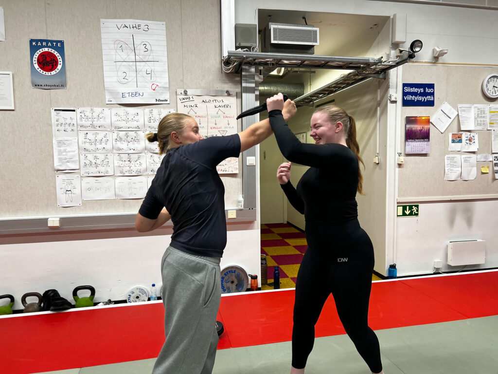Kurssi huipentui maastoviikonloppuun Upinniemessä, mutta sitä ennen ohjelmassa oli ollut syväjohtamisen mallia ja kriisivuorovaikutuksen käsittelevä luento, jonka piti Tatu Pätiälä Kirkkonummen Reserviupseeriyhdistyksestä, ja itsepuolustuskoulutusta, jota veti Mika Vainikainen Krav Maga Kirkkonummi -seurasta. Itsepuolustuksen harjoittelu oli hauskaa, ja opettajatkin olivat innoissaan itsepuolustuksen touhussa mukana.