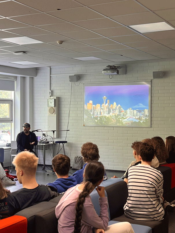 Koulussamme vieraili 10.9. Seattlen University Prep -koulun yhteistyökoordinaattori Brian Gonzales. Kyseinen koulu on sama, jossa viime lukuvuonna yhdeksän Porkkalan lukion opiskelijaa pääsi vierailemaan vaihto-opiskelijoina kahden viikon ajan. Aluksi Gonzales piti A-talon yläaulassa esitelmän, jossa hän kertoi hieman Seattlesta ja koulusta, jossa hän on töissä. Tämän jälkeen saatoimme hänet läheiseen tyhjään luokkaan haastateltavaksi.