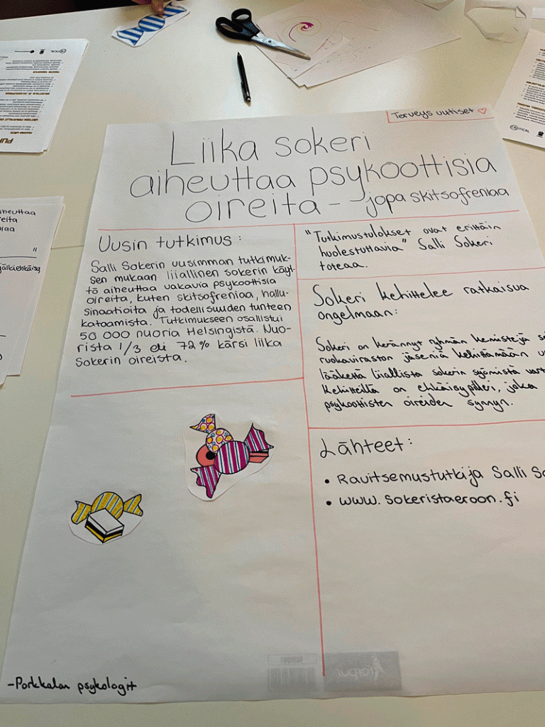 Kolmas työpaja oli nimeltään Epäluotettavan äärellä- tervetuloa huuhaatehtaaseen. Työpaja oli kilpailu, jossa kilpailtiin vaikuttavimman huuhaan tehtailijan tittelistä. Opimme tietämään miten ihmisiä huijataan ja kuinka tunnistaa manipuloinnin keinot.