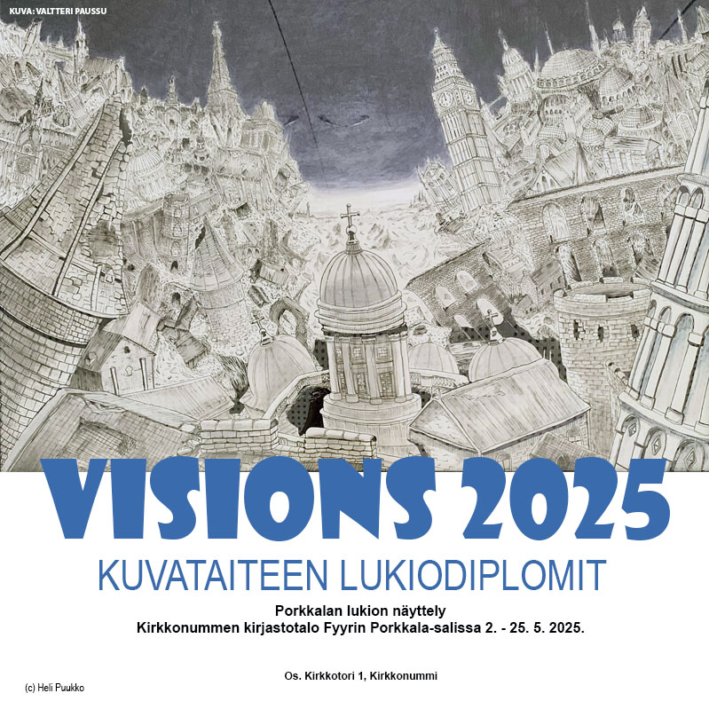 Visions 2025 – Porkkalan lukion kuvataiteen lukiodiplomityöt ovat esillä kirjastotalo Fyyrin Porkkala-salissa